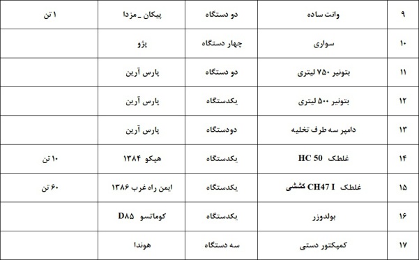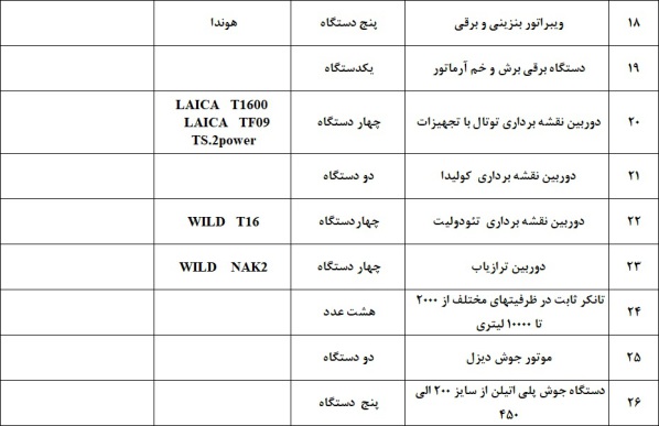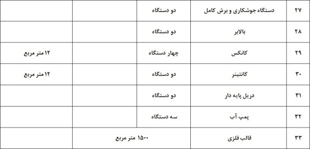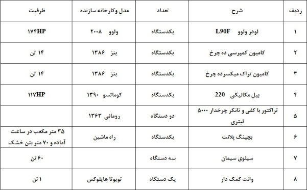 لیست تجهیزات و ماشین آلات شرکت چم گستر